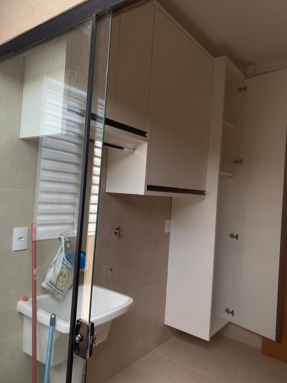Cozinha gourmet com forno embutido, fogão cooktop, depurador de ar, armários com prateleiras e gaveteiros.